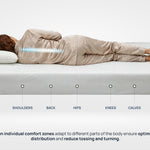 • Οι επτά ξεχωριστές ζώνες επαφής μεταξύ του στρώματος και διαφορετικών μερών του σώματος εξασφαλίζουν βέλτιστη κατανομή βάρους και μειώνουν το γύρισμα και το ανακάτεμα.
