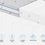 • Ο προφίλ πυρήνας εξασφαλίζει σωστή ευθυγράμμιση της σπονδυλικής στήλης και βελτιώνει την κυκλοφορία του αίματος κατά τον ύπνο.