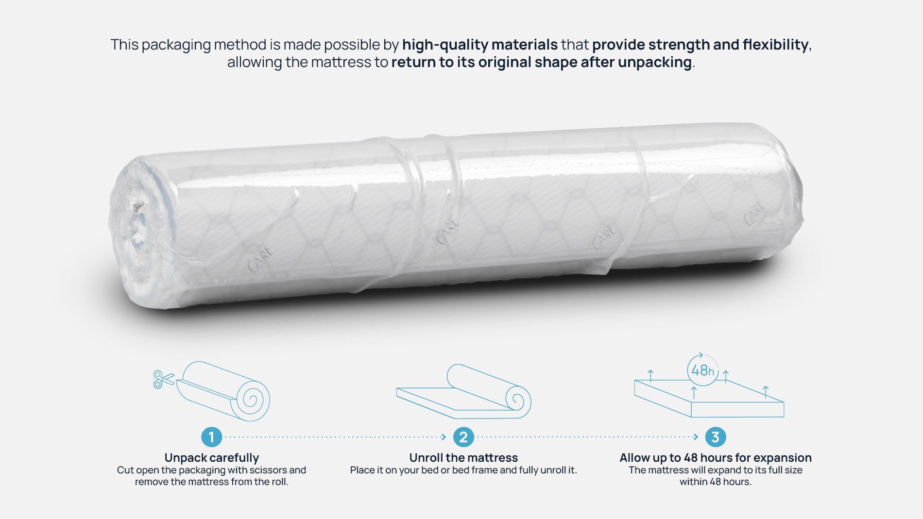Τα στρώματα που είναι σφραγισμένα με κενό αέρος πρέπει να ξεπακεταριστούν εντός 30 ημερών από την παραλαβή για να διατηρηθεί η εγγύηση. Μετά το ξεπακετάρισμα, το στρώμα δεν πρέπει να χρησιμοποιηθεί για 24–72 ώρες ώστε να επανέλθει πλήρως στο αρχικό του σχήμα.