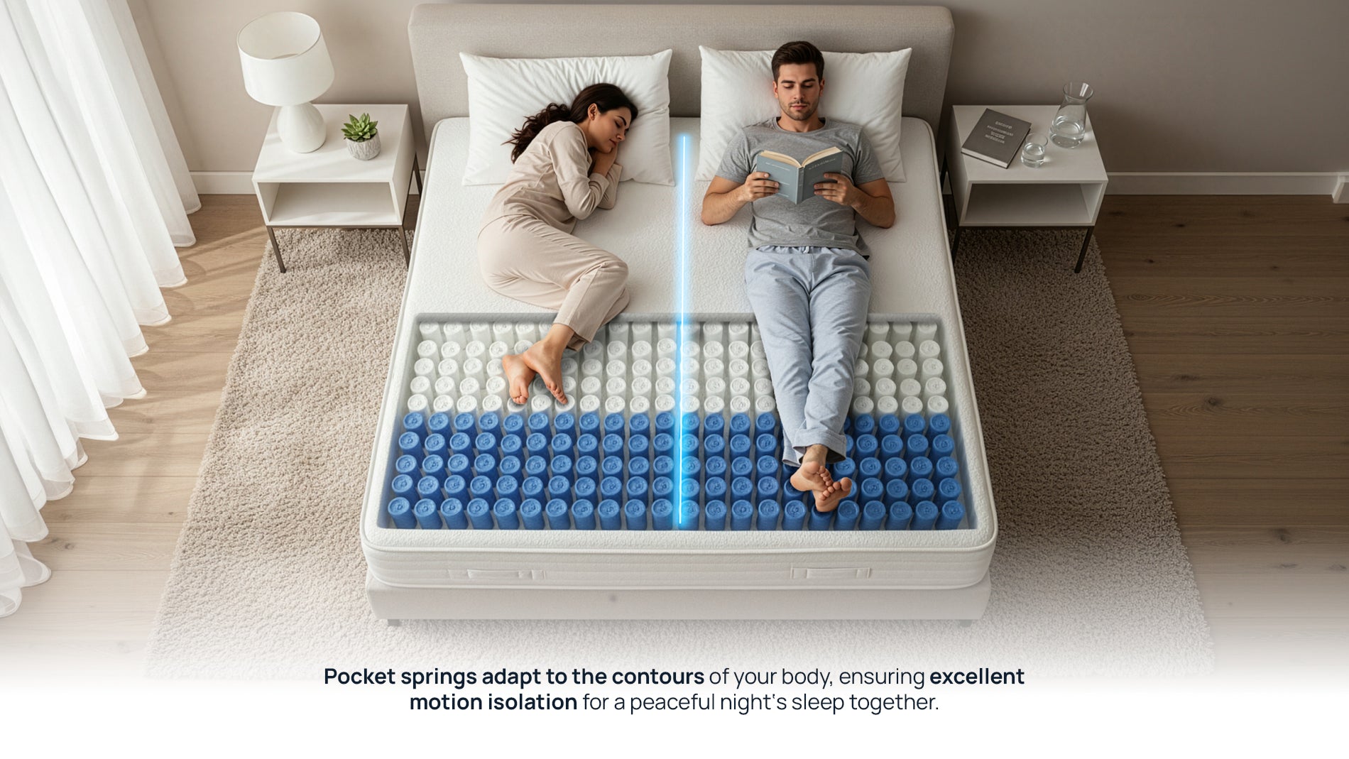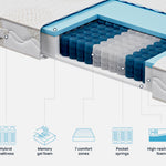 - Οι επτά ξεχωριστές ζώνες επαφής μεταξύ του στρώματος και διαφορετικών μερών του σώματος εξασφαλίζουν βέλτιστη κατανομή βάρους και μειώνουν το γύρισμα και το ανακάτεμα.