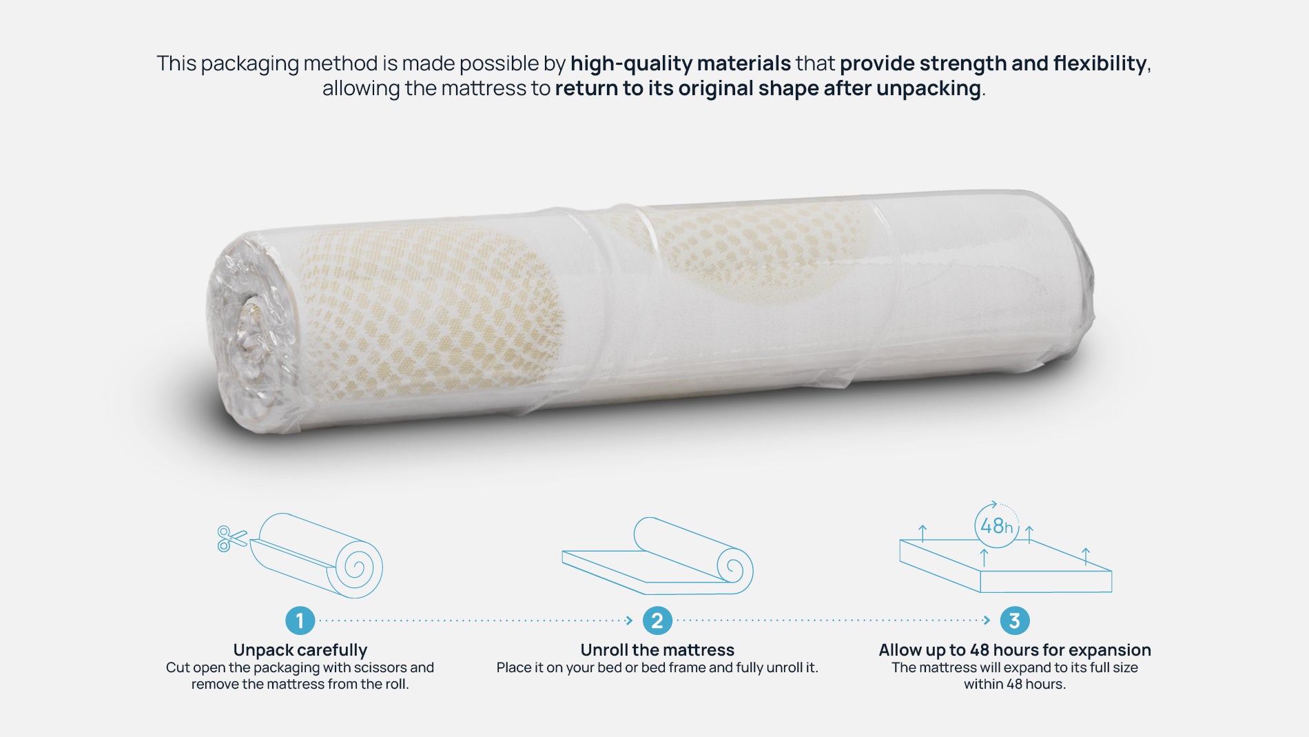 Τα στρώματα που είναι σφραγισμένα με κενό αέρος πρέπει να ξεπακεταριστούν εντός 30 ημερών από την παραλαβή για να διατηρηθεί η εγγύηση. Μετά το ξεπακετάρισμα, το στρώμα δεν πρέπει να χρησιμοποιηθεί για 24–72 ώρες ώστε να επανέλθει πλήρως στο αρχικό του σχήμα.